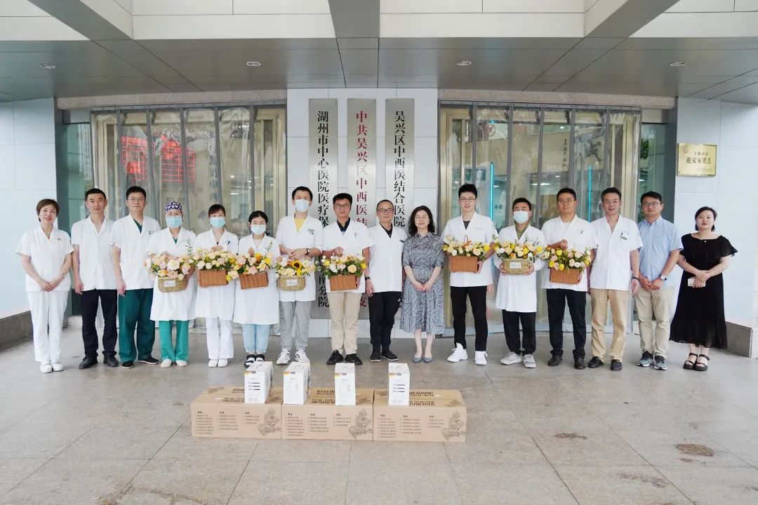 8月17日下午,在第六个“中国医师节”(8月19日)即将来临之际,为进一步弘扬“敬佑生命、救死扶伤、甘于奉献、大爱无疆”的崇高职业精神,激励广大医务工作者在新时代立足岗位,奋发赶超。南太湖新区管委会副主任吴张欢、南太湖新区社发中心副主任杨剑锋一行来到湖州第四医院看望慰问全体医务工作者。湖州第四医院党总支书记张金炎、院长俞建峰等陪同。
