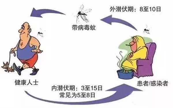 登革热是一种经蚊媒传播的传染病,埃及伊蚊和白纹伊蚊叮咬患者或隐性感染者后,经8~12天的潜伏期(也称为外潜伏期)后,具有传播该病毒的能力。健康人被携带病毒的蚊虫叮咬后就有可能感染登革病毒,3~14天的潜伏期(也称为内潜伏期)后部分敏感人群便会发病,也有部分人不发病(称为隐性感染者)。目前,我国人群普遍易感,而在东南亚、拉丁美洲的许多地区,以儿童感染为主,也是儿童死亡的重要原因之一。