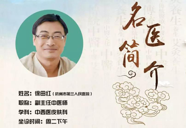 本周二(10月8日)下午,杭州市第三人民医院中西医皮肤科副主任中医师徐田红来我院国医馆坐诊。