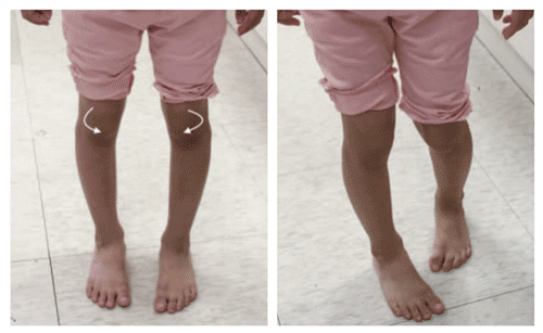 2、胫骨内旋——一般来说在1岁到3-4岁的孩子多见,2/3是双侧,一般在5岁前自行缓解。