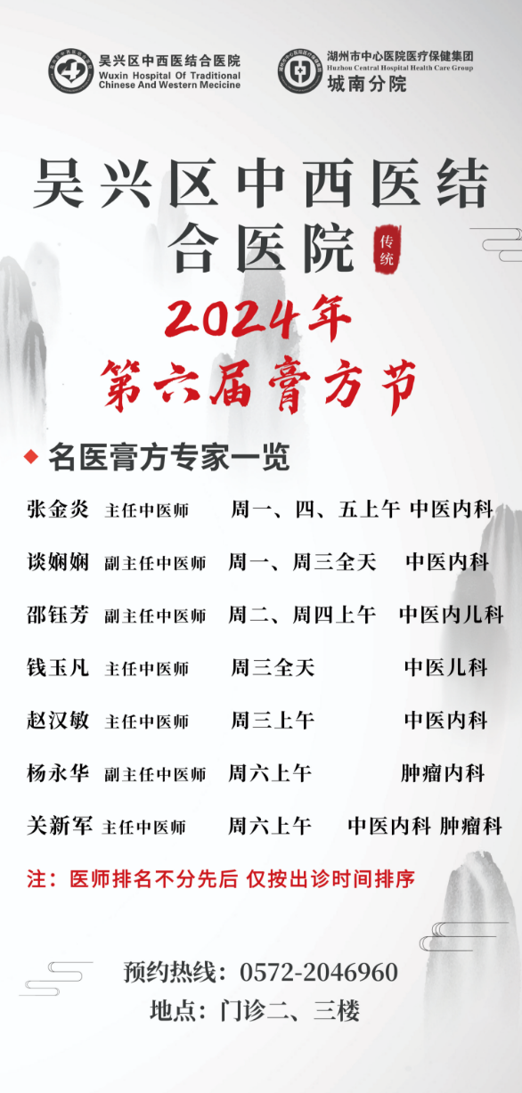 【专家|医讯】吴兴区中西医结合医院下周(12月2日--12月8日)专家、专病门诊安排